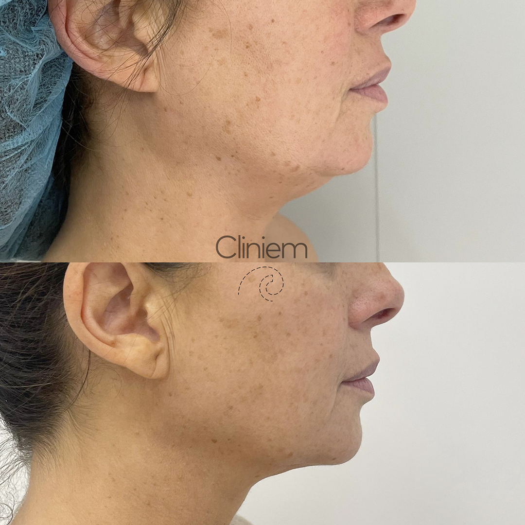 Gracias a ello, se producirá una retracción de la dermis, el tejido subdérmico y la fascia muscular, con un efecto tensor inmediato que seguirá mejorando durante meses gracias a la producción intensa de neocolágeno.